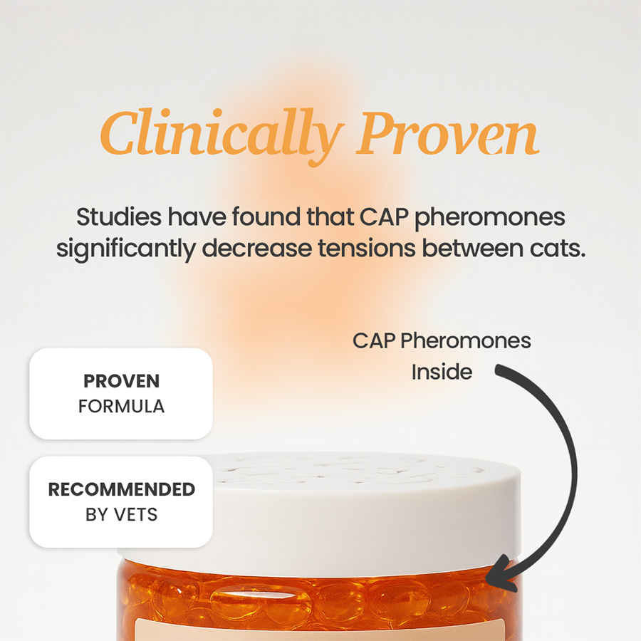 CatCalm Family contains a high dosage of CAP pheromones, the mother pheromone, to align the pheromone signatures of your cats to create real social bonding and stop tensions and fights.